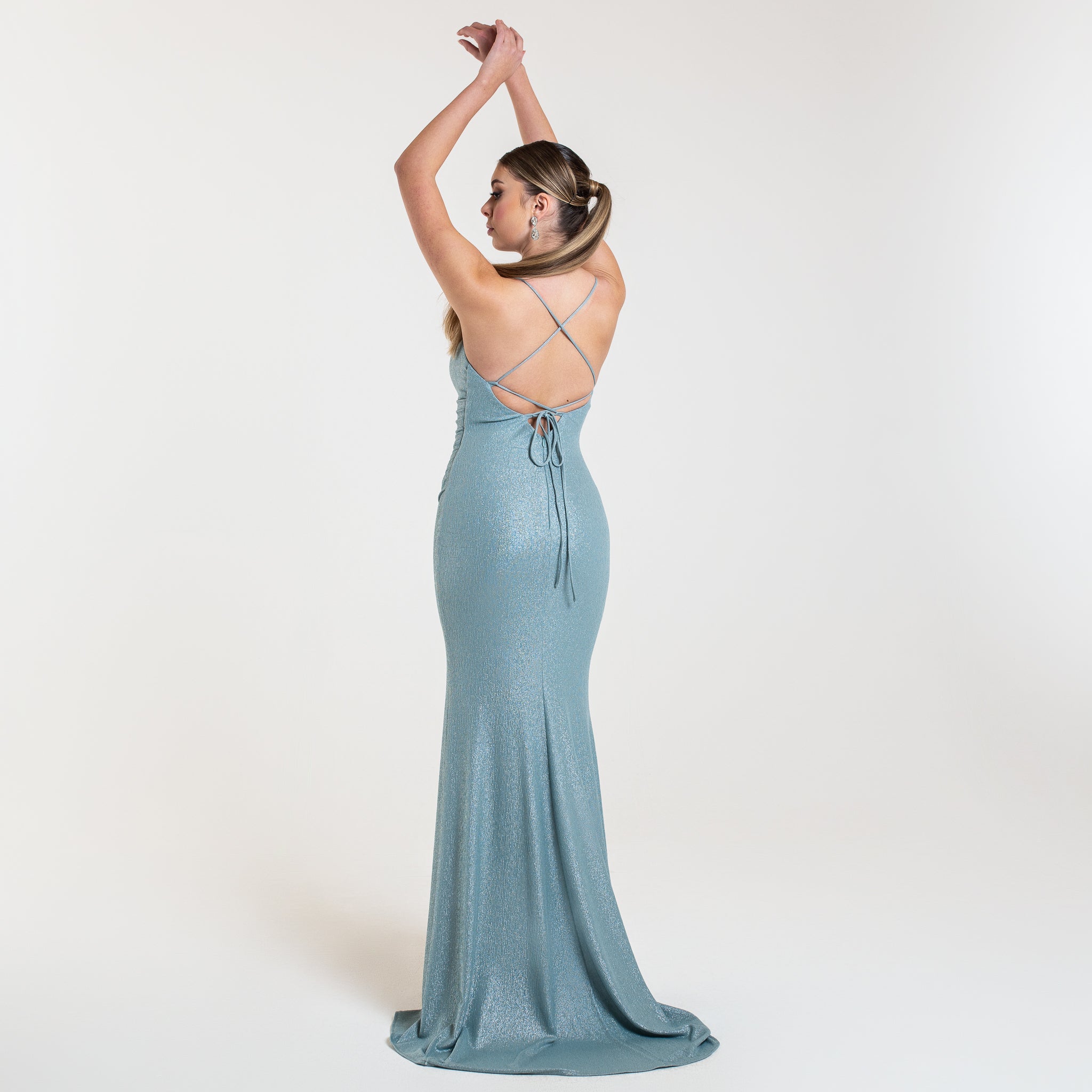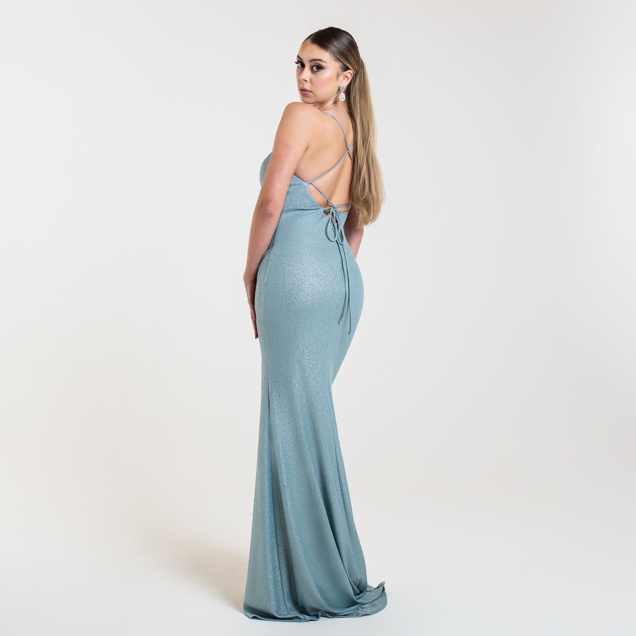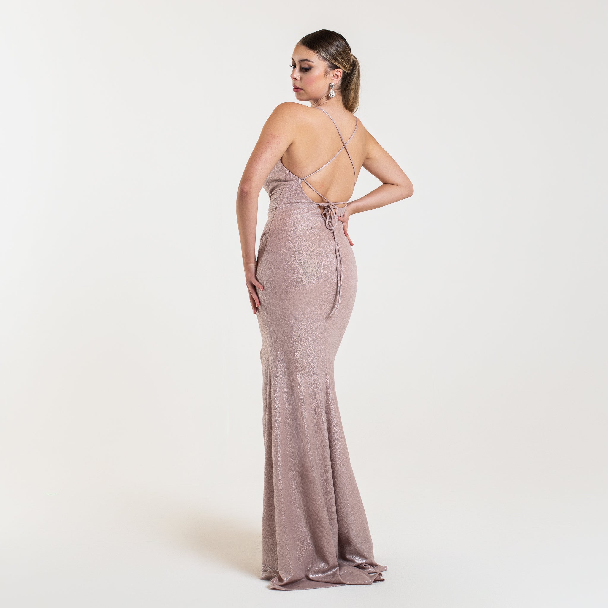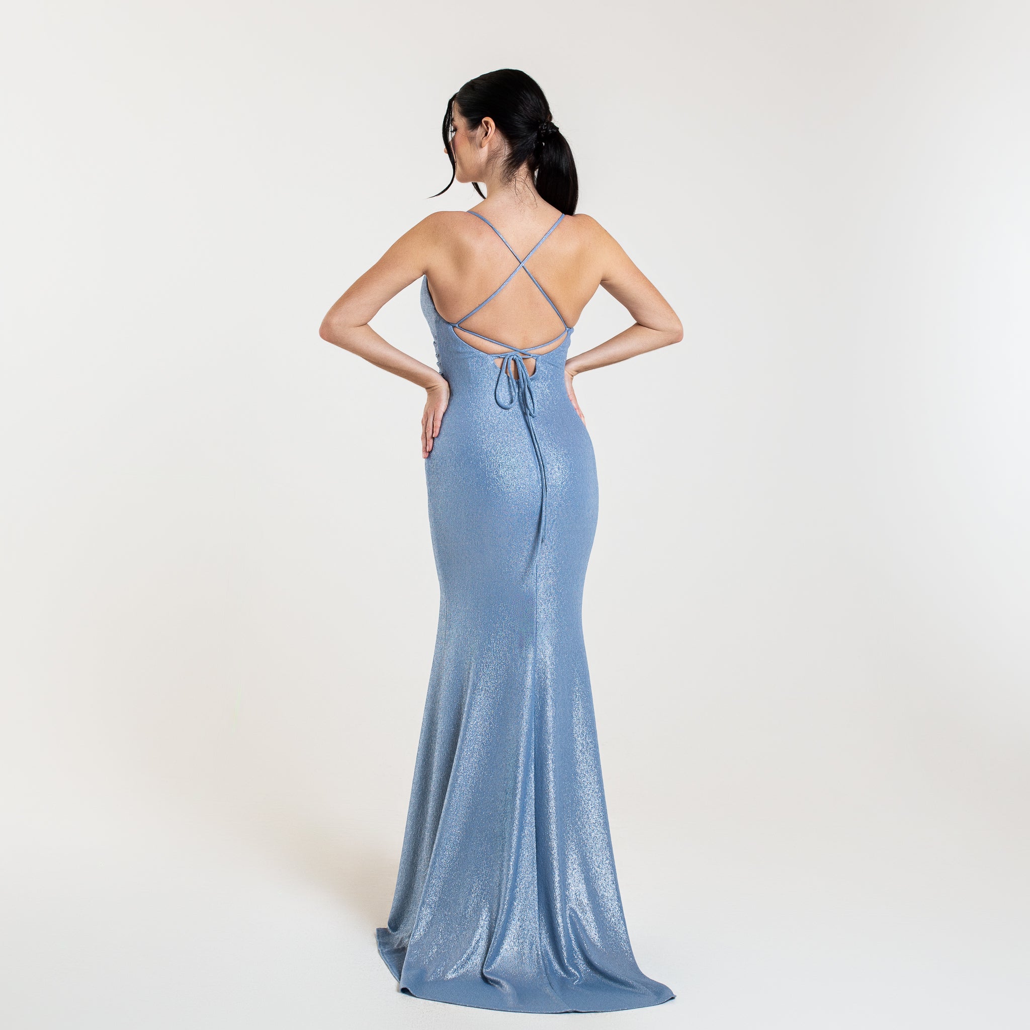 Das AURELIA-Kleid ist ein elegantes und raffiniertes Abendstück. Der tiefe Ausschnitt und der schmeichelhafte Meerjungfrauen-Schnitt betonen die Silhouette. Überkreuzte Trägerdetails auf der Rückseite sorgen für einen femininen und glamourösen Charakter, während der schimmernde Stoff das Licht einfängt und für ein funkelndes Finish sorgt. Perfekt für formelle Anlässe wie Galas oder Zeremonien.