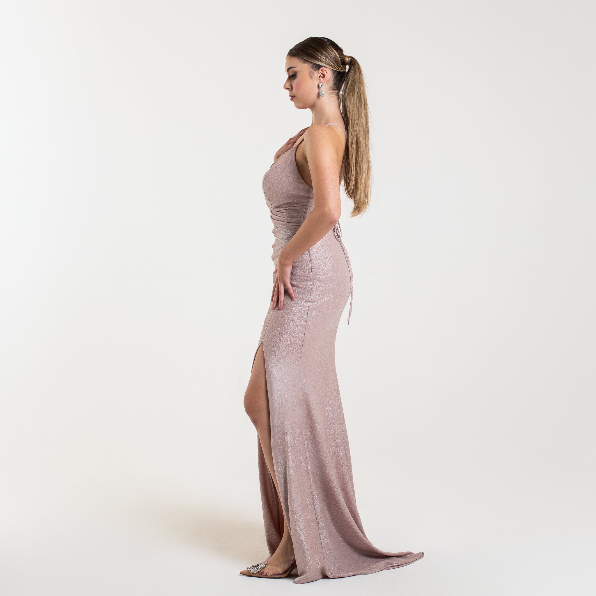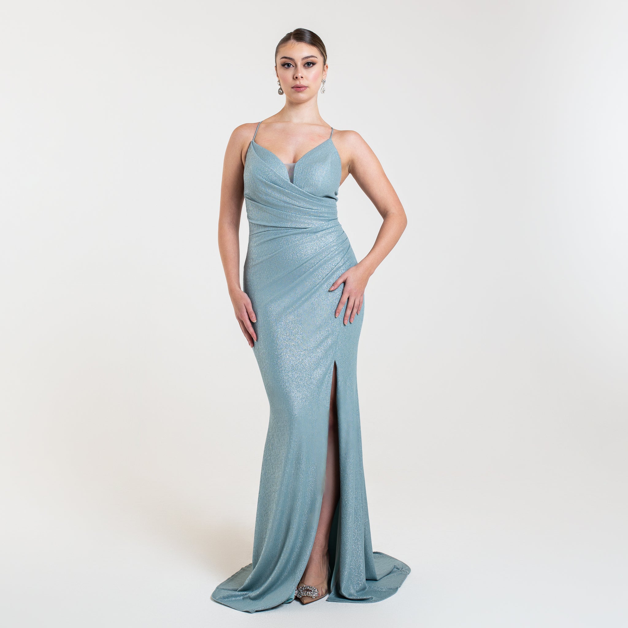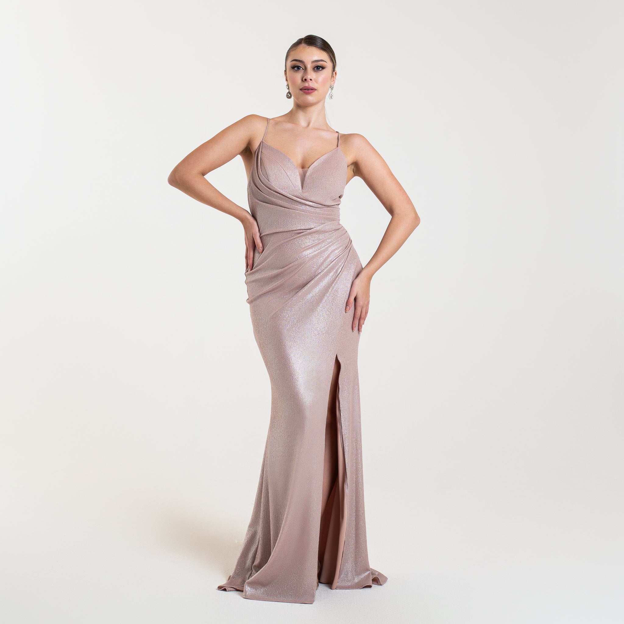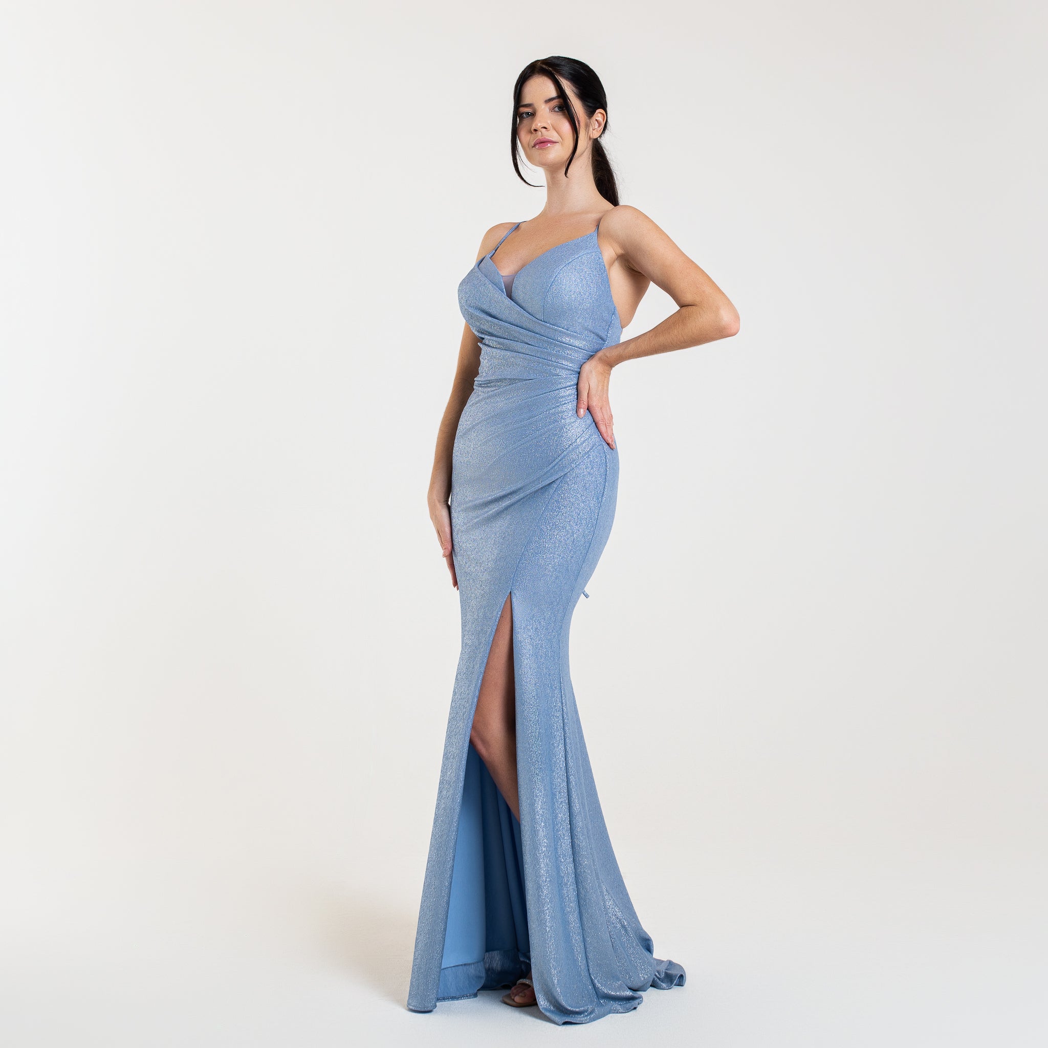Das AURELIA-Kleid ist ein elegantes und raffiniertes Abendstück. Der tiefe Ausschnitt und der schmeichelhafte Meerjungfrauen-Schnitt betonen die Silhouette. Überkreuzte Trägerdetails auf der Rückseite sorgen für einen femininen und glamourösen Charakter, während der schimmernde Stoff das Licht einfängt und für ein funkelndes Finish sorgt. Perfekt für formelle Anlässe wie Galas oder Zeremonien.